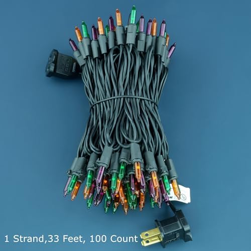 YULETIME 100 Count Orange Green Purple Christmas Lights, 33 Feet Black Wire UL Certified Incandescent-Like LED Mini String Lights