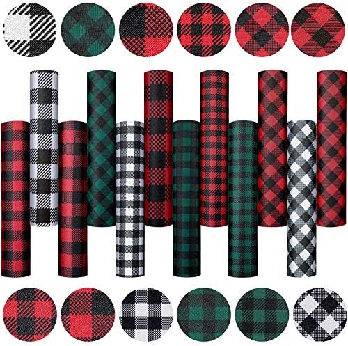 12 Pieces Christmas Buffalo Plaid Faux Leather Sheets Fabric for DIY Crafts Leather Sheets for Earrings Hair Bows DIY Crafting, 6.3 x 8.3 Inches