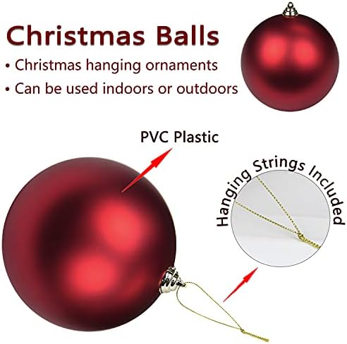Christmas Ornaments Balls 7.1" Large Christmas Decorations Xmas Tree Shatterproof Big Red Christmas Ball Ornaments with Hanging Loop for Wedding Holiday Halloween Party Indoor Outdoor Decor