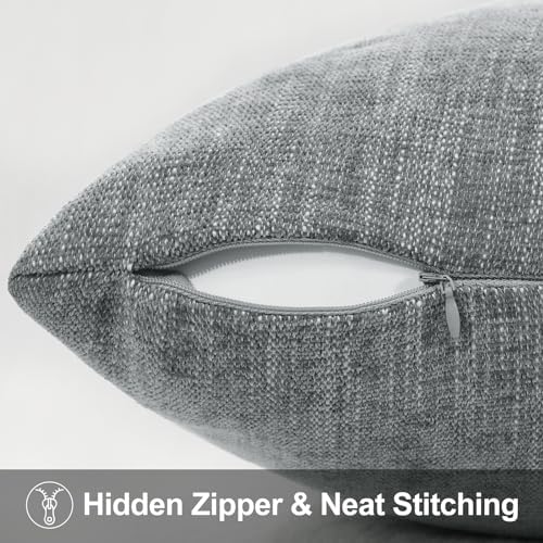 decorUhome Christmas Chenille Decorative Throw Pillow Covers 18x18 Set of 2, Farmhouse Textured Square Neutral Solid Accent Pillow Covers for Couch Sofa Bed Living Room Home Decor, Grey