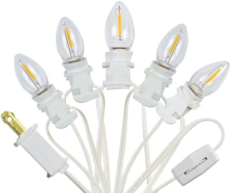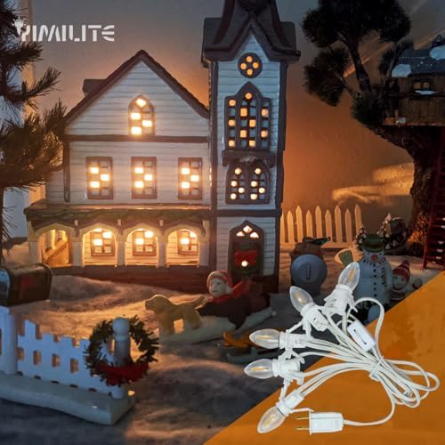 5 Base C7 String Bulbs Christmas Village Light Accessory Cord with 5 LED Light Bulb Universal Clip White Cord with On/Off Spare Fuse Switch Plugs for Decorations Christmas Village House