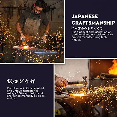 - 【A Gorgeous Huusk Viking Knife】Not only does it have all the qualities you want in a Japanese chef knife, but also its craftsmanship and style are refreshingly unique. Each Huusk japanese knife is handcrafted using a 138-step design and sharpened manually by blacksmiths. That means a sharper edge and lasting durability, so our Huusk meat cleaver will stand the test of time.