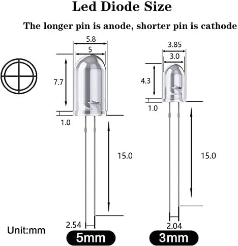 - ✅[Item Dimension] Tiny led diodes head is round,pin length is 18mm, Voltage: Red/Green 1.8V-2.2V, Yellow/Orange 2.0V-2.2V, Blue/White 3.0-3.2V, Electric current:20mA. In light emitting diode, the longer pin is anode, shorter pin is cathode