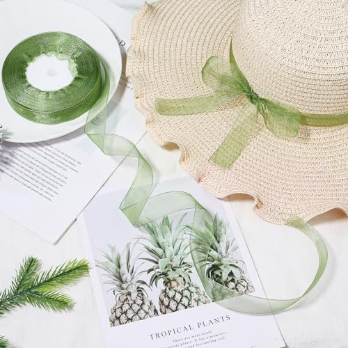 3/4 inch Sage Green Sheer Organza Ribbon 50 Yards Chiffon Ribbon for Gift Wrapping Christmas Halloween Decoration Wedding Flower Bouquet Crafts