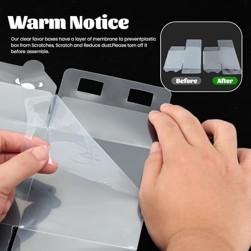 - Remove Protective Film: Small macaroon boxes have a layer of membrane to prevent boxes from scratch and reduce dust. Please torn off it before assemble,and clear mini cookie box has distinct creases and markings that are easy to identify