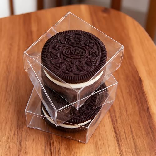 XP-ART 50 PCS Individual Clear Chocolate Coverd Oreos Cookie Boxes,2.36" x 2.36" x 1.18" Individual Macaron Box Mooncake Packaging for Wedding Easter Halloween Christmas Party