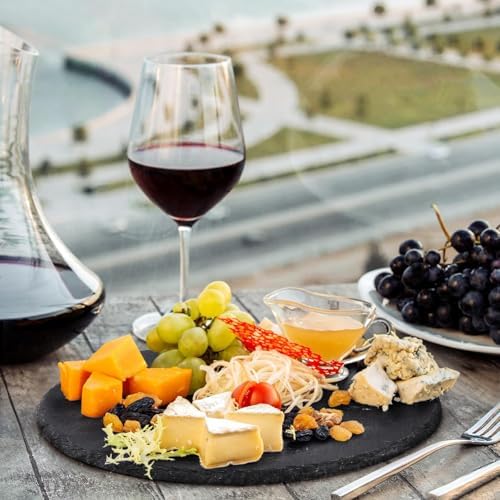 - FASHIONABLE SLATE PLATES: The charcuterie boards are stylish and serving slate cheese platters have a vintage style to display and chop your sushi, appetizer, fruits, vegetables, crackers, veggies, cheese, cake, cured meats, desserts. The unique natural slate beauty perfect for home decor, adding a sense of luxury of your home