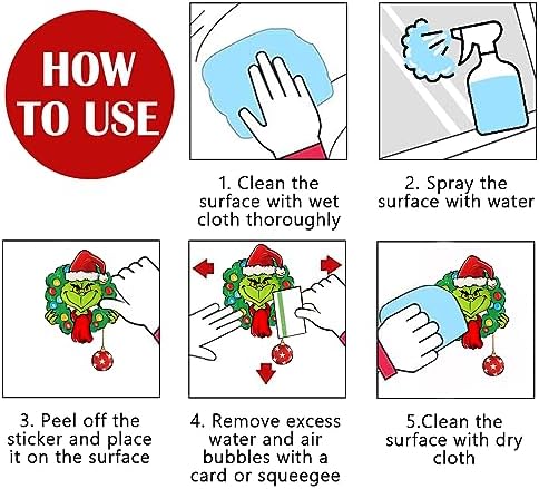 - No Adhesive Home Decor: These Christmas window decors are thin static clings, which do not require additional glue or tape, and can be easily attached to a smooth and dry surface. Just remove the window sticker and paste it on the surface of cars, trucks, glass, mirrors, windows, glass vandal-proof doors and bathroom surfaces; and use a card to squeeze out air bubbles from top to bottom. It is easy to attach to your window and remove without leaving sticky residue