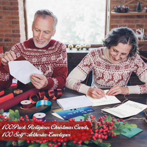 Zhanmai 100 Pack Religious Christmas Cards with Bible Verses, Christian Nativity Cards with Envelopes, Stickers for Christmas Gifts (Classic Style)