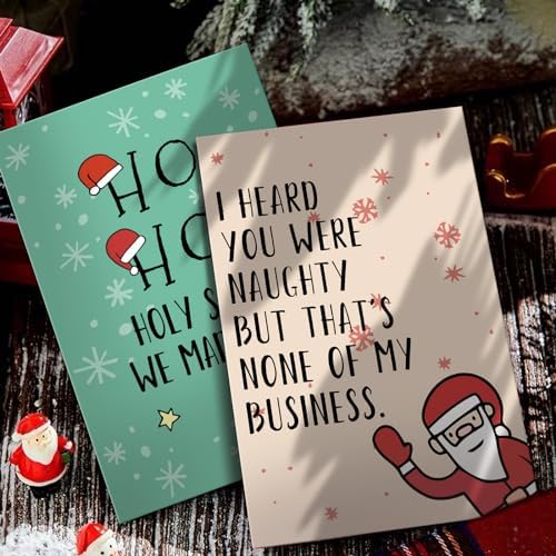 - Unique Design: Are you looking for a set of funny Christmas cards? Well, we've designed a set of delicate and humorous cards featuring Christmas elements like Santa Claus, snowman and etc. There are 12 designed cards in this set, and each kind of card has different quotes that will make someone laugh, 2 cards for each design, and 24 cards in total. Thus You can give it to the person you think is suitable according to different funny quotes.