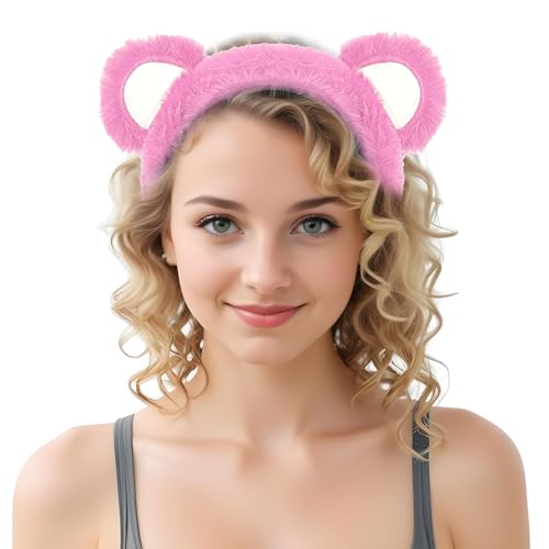 Wittocs Pink Bear Ears Headband Plush Bear Ear Headwears for Women Girls Makeup Headband Cute Fashion Fluffy Soft Face Washing Headbands New Year Christmas Valentines Day Hair Hoop