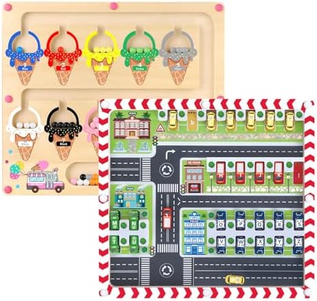 - "【2 -In -1 Magnetic Letter Maze】 Ice Cream Magnetic Maze is a puzzle toy that can help children identify colors and learn numbers. Children can enjoy the fun of color classification and counting, and stimulate the interest of learning numbers and colors. The magnetic maze of the parking lot is an interesting way for children to learn.Find the correct method to complete the word or achieve specific goals.It challenges their ability to solve problems and space consciousness."