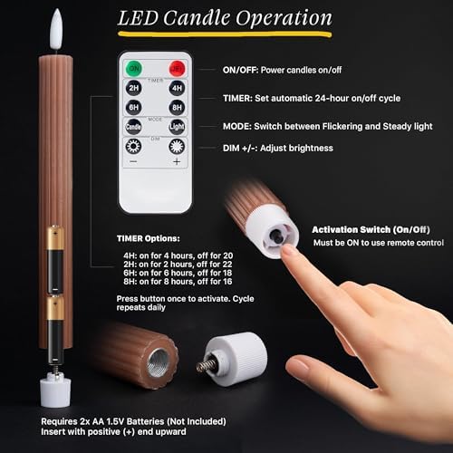 - PRECISE DIMENSIONS & COMPATIBILITY - Overall height: 10" with 1.25" flame | Candle diameter: 0.94" (24mm) | Base diameter: 0.83" (21mm) | Fits standard 7/8 inch (22mm) taper candle holders | Battery-operated (batteries not included) | Unscented | Remote Controller Included. They're ideal for any setting where traditional candlelight is desired without the hassle