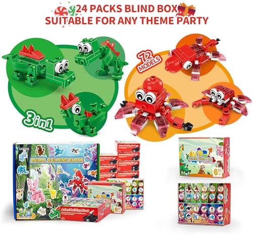 - 【24 Pack 72 Kinds of 3in1 Cute Animals Building Toy】Mini building block sets party favors include 24 different mini animal building blocks. Land animals include elk, rabbit, elephant, dog, etc. Marine animals include seahorse, killer whale, octopus, lionfish, etc. Kids can learn about different animals while building these small toys kits. These are cool party favors for kids aged 8-12. Great for party favors or advent calendars.