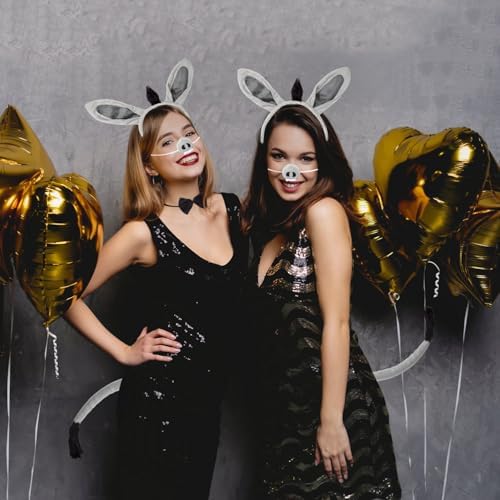 JIALWEN Donkey Costume Set Donkey Ears Headband Nose and Tail Bowtie Animal Kit Cosplay Party Decor Halloween Christmas Easter Dress Up Accessories