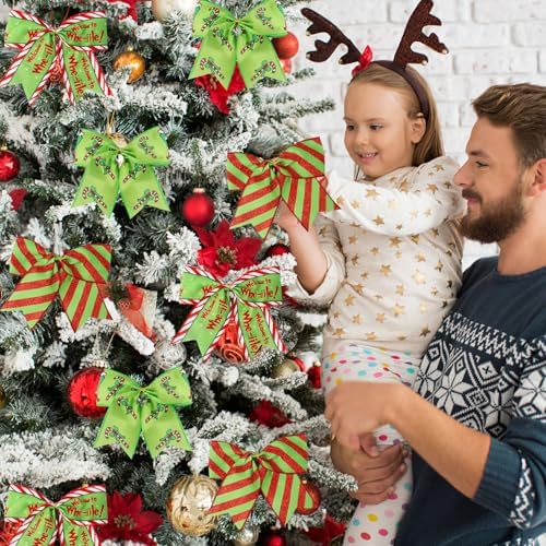 - Christmas Bow Set: You will receive 12 pcs Christmas Bows,size is about 6 x 6 inch,crafted from 2.5 inch wide ribbon,suitable size for decorate Christmas tree or gift wrapping etc. You can use them to decorate your Christmas tree,house and gift