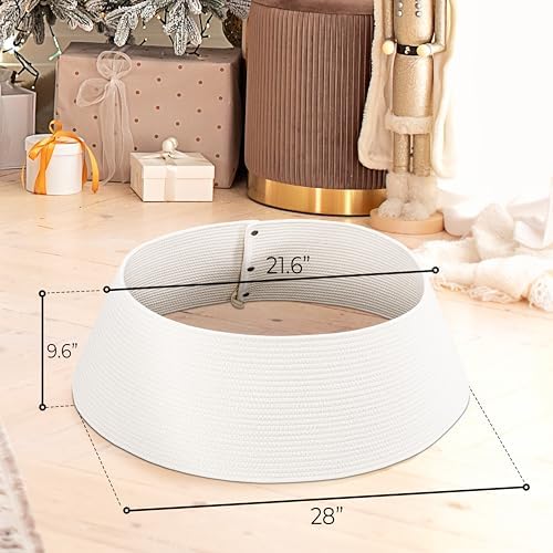 - Perfect Fit for a Picture-Perfect Tree: With a bottom dia. of 28”, a top dia. of 21.6”, and standing 9.6” tall, the tree ring fits snugly around most real & artificial Xmas tree bases, hiding unsightly stands and elevating your Xmas home decor to a whole new level