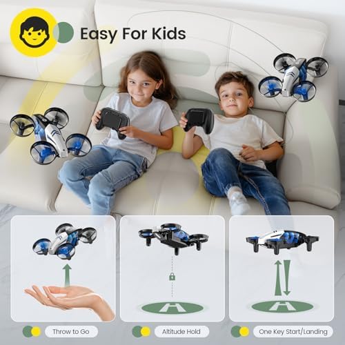 - FLY IN SKY MODE: Experience incredible 3D flips, circly fly, and four posture deformations with just the push of a button. This small indoor drone allows you to unlock amazing aerial stunts effortlessly, bringing joy and excitement to both you and your kids
