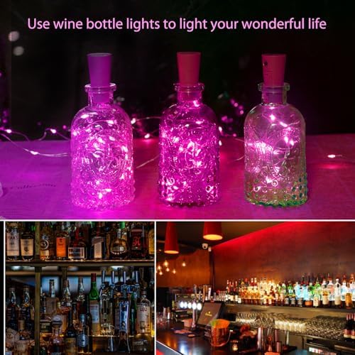 - 【 10 Pack Pink Wine Bottle Lights with Cork 】- Powered by 3 LR44 button batteries (included), the 7 feet wine bottle fairy light with 20 upgraded LEDs is perfect for recycling your empty bottles with romance. The thin copper wiring and small-sized LED bulbs will add a delicate and cozy touch to all kinds of bottles.