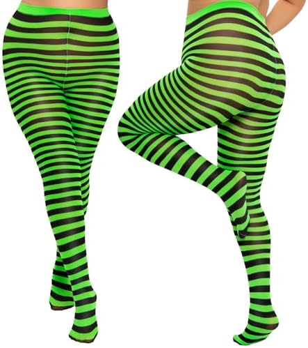 Yilanmy 2 Pairs Plus Size Striped Tights for Women Colored Halloween Christmas Costume Leggings Footed Opaque Pantyhose