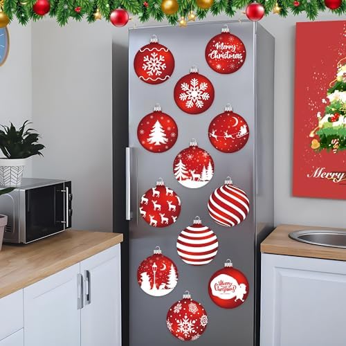 12 Pcs Christmas Garage Door Decorations Magnets Merry Xmas Ball Garage Door Magnet Stickers Christmas Ball Refrigerator Magnets Decals for Garage Door Car Refrigerator Indoor Outdoor Home Decor