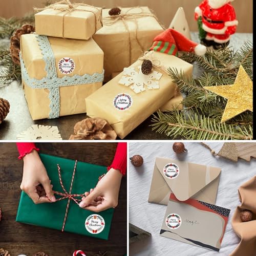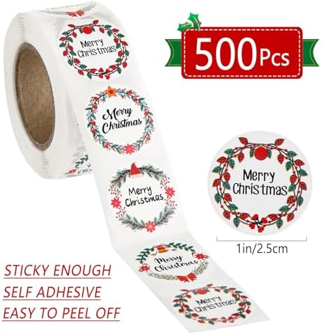 - 500 Pcs Merry Christmas Stickers for Envelope, Christmas Label Stickers Christmas Stickers Roll Round Christmas Stickers Holiday Envelope Stickers for Envelope Card Gift Tags