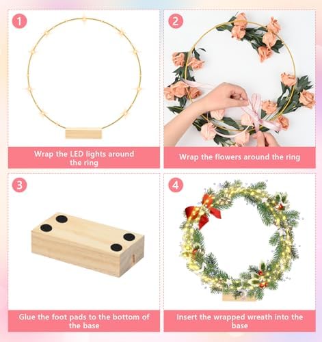 - Versatile for Any Crafting Project: Hollyfly metal hoops with wooden holders and LED Fairy Lights are ideal for a wide range of DIY decor projects. Perfect for creating centerpiece table decorations, dream catchers, macrame designs, wind chimes, wedding wreaths, floral hoop arrangements, Christmas ornaments, and other home decor masterpieces.
