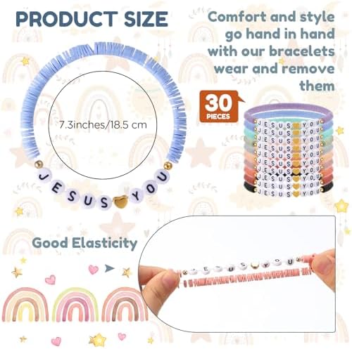 - Polymer Clay Material: these polymer clay bead Jesus loves you bracelets are mainly made from polymer clay and plastic, ensuring they can withstand everyday wear; Being waterproof, they offer constant durability for the users
