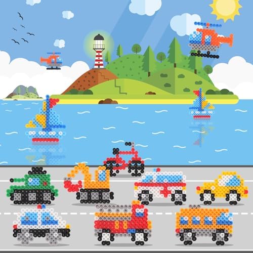- Vehicle Theme World: The fuse beads kit for can take your attention away from electronics and focus on handicrafts. can use the beads for Adult crafts to create cars, fire trucks, police cars, ambulances, excavators, tanks, ships, buses, helicopters, sailboats and bicycles, etc. 10mm large beads fit small hands and are designed for Adult , a creative choice for spending quality time.