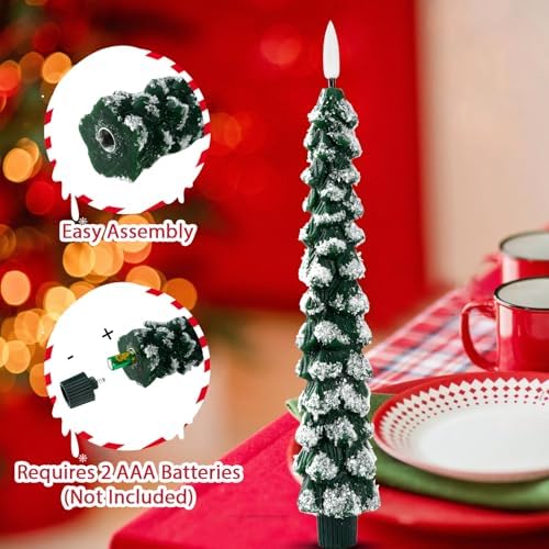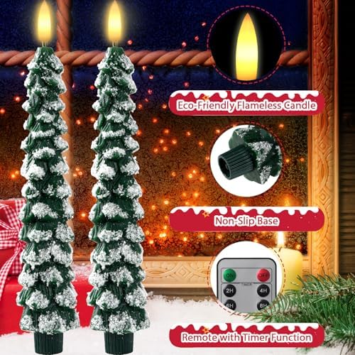 Flameless Christmas Tree Candles with Remote – 2 Pack LED Snowy Tree Battery Operated Candles, Realistic Flickering Flame, Safe Holiday Home Decor for Christmas Decorations & Gifts