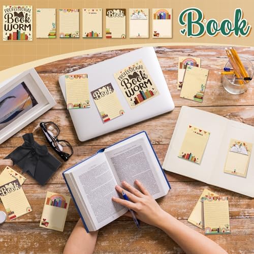 12 Pcs Book Club Sticky Note Set Book Lover Gifts Sticky Note Cute Pads Bookworm Task Trackers with Box Greeting Card Reading Accessories for Reader Bookish Teacher Christmas Gifts