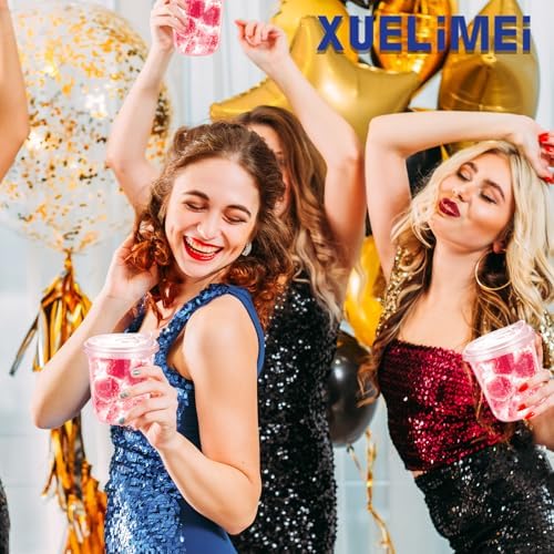12oz Disposable Stemless Glasses With Strawless Sip Lids,PET Disposable Drinking Cups,Clear Plastic Wine Glasses for Parties Birthday,Wedding,Meeting,Christmas Party Supplies. (50, Pink)