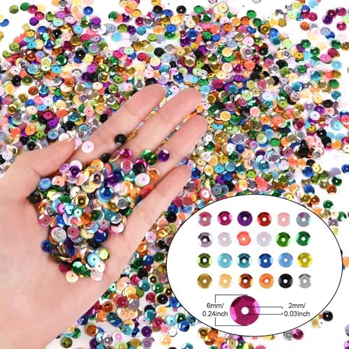 - Super Value Pack:You will receive 30,000 24-color Bulk Loose Sequins, each 6 mm /0.24 inches in diameter. A large number of colors to meet your needs, all colors are packaged in plastic boxes, easy to use.