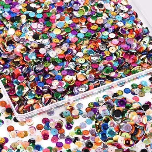 - Wide application:Loose sequins are ideally suited for a myriad of creative endeavors including artistic projects, DIY crafts, sequin slime, costume design, footwear decoration, apparel embellishment, scrapbooking, ornamental enhancements, jewelry crafting, sewing projects, greeting card design, and an array of other craft projects.