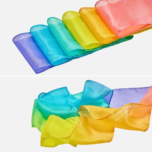 - Premium 100% Natural Silk - Our dance ribbon is made of 100% natural silk. The silk ribbon is very silky, lightweight, and skin friendly. When floated in the air or rotated in the wind, it looks like a vivid rainbow.