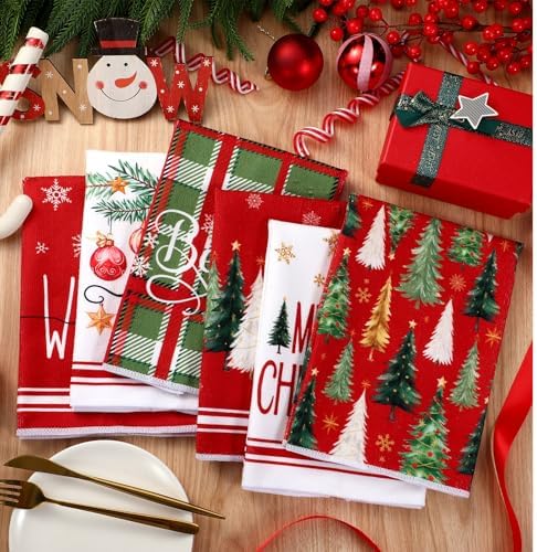 - Ample Quantity with Innovative Style: the package includes 6 Christmas kitchen towels, showcasing an inventive combination of red and green Christmas decorations; These towels not only fulfill your daily kitchenware cleaning needs but also lend a festive touch to your kitchen decor