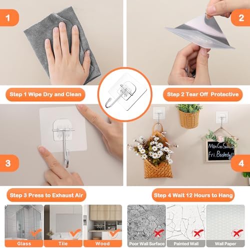 - Clear Easter Christmas Decorations Hooks: Hooks are easy to install, no drilling, no screws, no nails, no glue. Just tear the protective surface and insert the hook into the slot. Easy to paste without damaging walls or doors. Wreath hanger can meet your various needs. Decorating your wall or door with our clear wreath hanger in an easy, beautiful way! Clear wreath door hanger can be widely used outside doors and inside doors for wreaths, Easter Christmas holiday decoration
