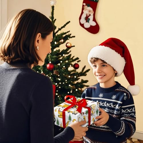 - Christmas Design: A variety of bright yellow construction machines, excavators, trucks, and cement mixers, along with Christmas tree and snowman design, creates an playful and fun festive atmosphere, will make your gift wrap more special.