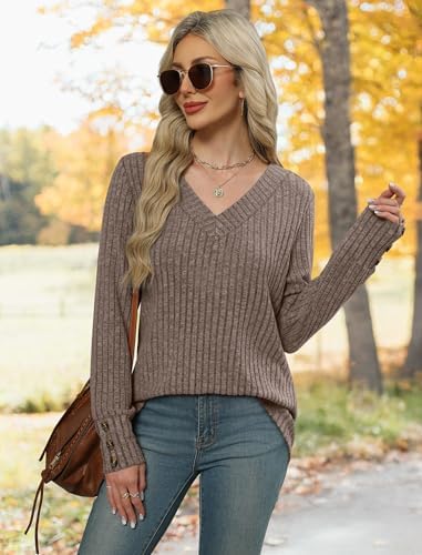 WIHOLL V Neck Long Sleeve Shirts for Women with Bottons Casual Fall Outfits Lightweight Tunic Sweaters Fashion Clothes 2025