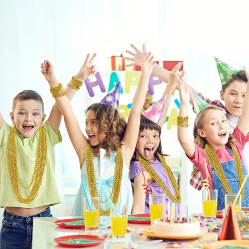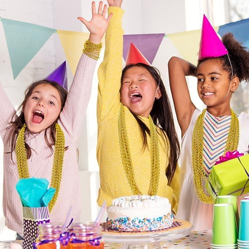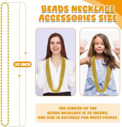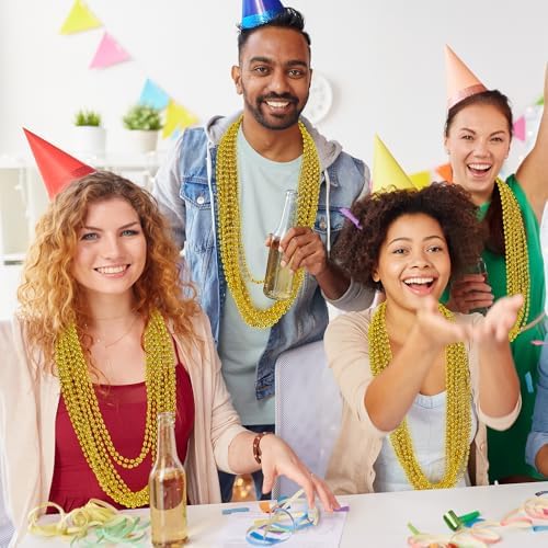100PCS Mardi Gras Beads, Gold Oval Beaded Necklace Stuff, 32" Mardi Gras Christmas Beaded Necklace Costume Bulk, Festival Parade Throw Accessories for Mardi Gras St Patricks Christmas Celebrations