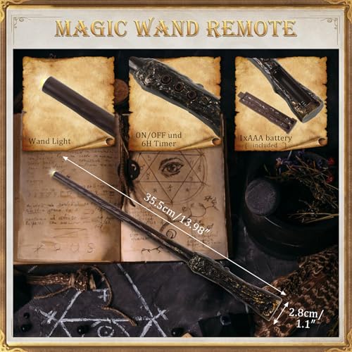 - 【Magic Wand Remote Control】The Magic Wand Remote adds a touch of fun and fantasy to your décor. You can easily turn the candle on and off, and it also has a 6-hour timer feature. Automatically cycles on every 24-hour cycle, which will save you the hassle of opening/closing them as they will automatically reopen at the same time every day.. The Magic Wand remote only requires one AAA battery to power on (included).