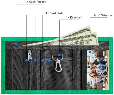 - HIGH CAPACITY: This kids wallet features 1 ID window,2 Zipper purse,3 card slots,2 big bill compartment, well secure all your belongings and small stuff. You can use this wallet to carry cards,cash,student IDs,coins and family photo.