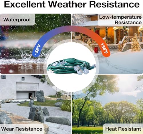 - Weather Resistance: Durable PVC jacket is waterproof, antifreeze, flame-retardant, abrasion- and corrosion-resistant. Works reliably in temperatures from -58°F to 158°F, perfect for long-term outdoor use such as holiday lights