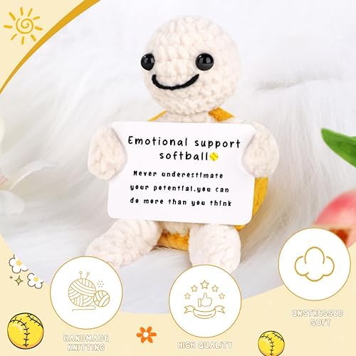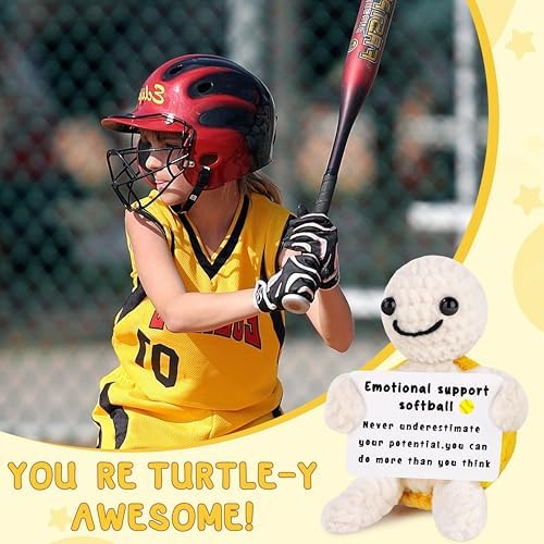 JoycuFF Funny Mini Crochet Softball Turtle Gifts - Emotional Positive Inspirational Softball Stocking Stuffers Gift for Lovers, Players, Fans - White Elephant Christmas Handmade Gifts for Her