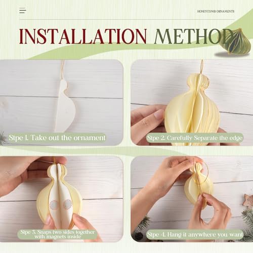 - Easy to Assemble & Store: These honeycomb christmas decorations open and close effortlessly. No tape or glue required, simply snaps two sides of the decorative hanging ornaments together with hidden magnets inside, mix and match an assortment of impressive Christmas decorations as you like. After the holidays, fold them flat again for compact storage and reuse year after year