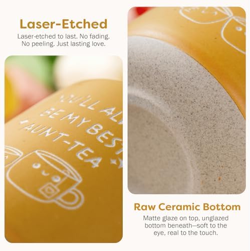 - Cherish Every Sip with Heartwarming Design:This "Aunt-Tea" mug charms with its playful and sentimental design, celebrating the special bond you share. The witty "aunt-tea" pun and elegant ceramic finish make it a delightful daily reminder of your love—perfect for brightening her morning coffee or afternoon tea ritual.