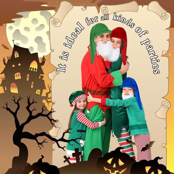 21 Pcs Halloween Dwarf Costume Accessories, Colorful Dwarf Hats Set with Large Nose and White Beard, Gnome Fairy Party Hats for Halloween Christmas Cosplay Theme Party