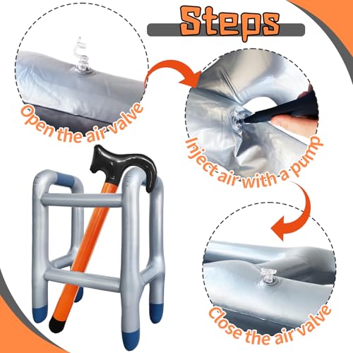 - 【Practical Design】:Fake cane blow up toy attracts attention at parties.It consists of a blue metallic gray walker and a brown and black cane.They are lightweight and suitable for decorating walls or windows.
