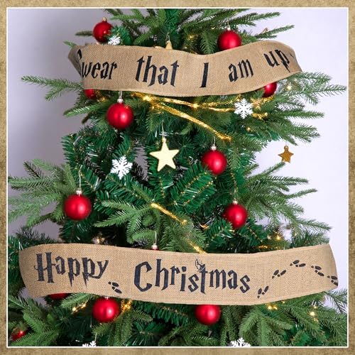 2 Pcs 62''x 4'' Christmas Tree Burlap Ribbon Garland, Wizard Burlap Ribbon Tree Decoration, Xmas Rustic Burlaps Ribbon Decor for Christmas Winding Hanging Home DIY Craft