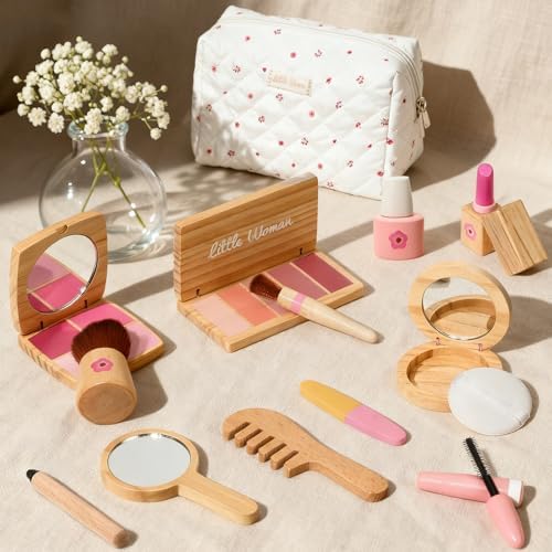 - 【100% Safe & No Mess】- The wooden makeup toy set crafted from natural wood with non-toxic paints,Your kids gets all the glamour of 'real' makeup without harmful chemicals or messy stains.